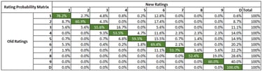 In the image above, you can see a probability matrix that not only provides TTC PDs but also offers valuable insights into both the model and portfolio:
